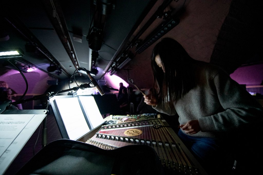 I was then given the ideal opportunity to create my electroacoustic blackboard: a year-long residency at Paraorchestra. We were lucky enough to record The End Times album live in the Wood Room at Real World Studios. When I’m in the studio, it’s important to me that the performers feel that they can really embody the story within the space, and using an incredible space like the Wood Room makes that process so much easier. We were able to record the whole performance in 3D using a cube mic array to reproduce the live sound perfectly in Dolby Atmos, so when you’re listening to the album, it’s as if you are sitting right next to us as it was played.