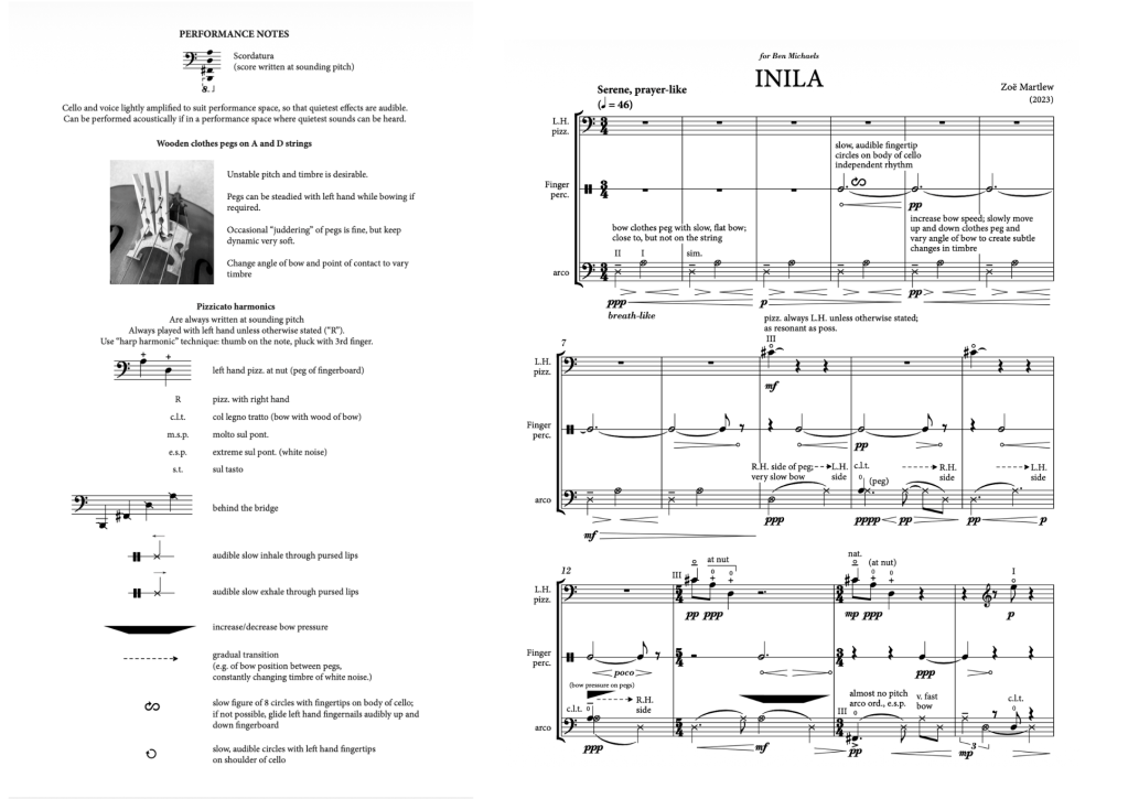 All those experimental techniques have come in super handy in my own work. Here’s a glimpse of a new piece for prepared cello, Inila. Bowing on clothes pegs sounds AWESOME – at times like a life-support machine…